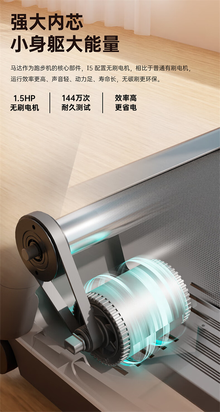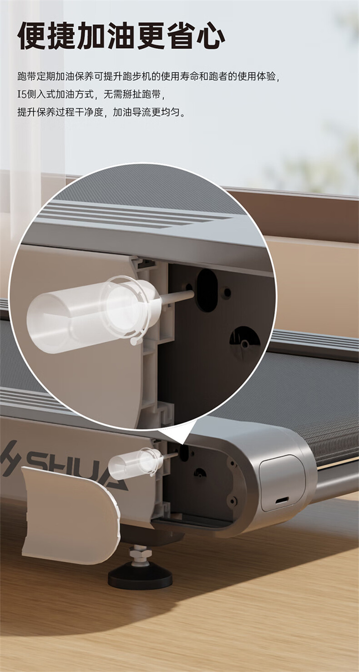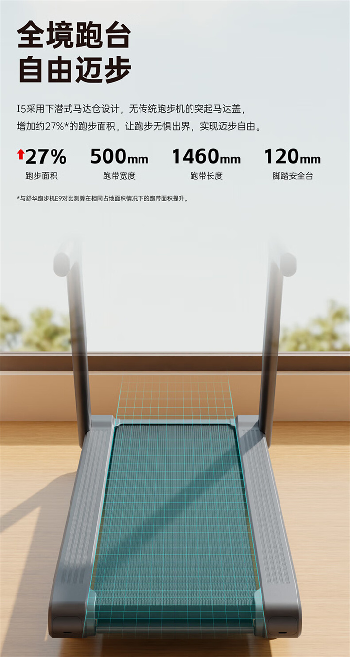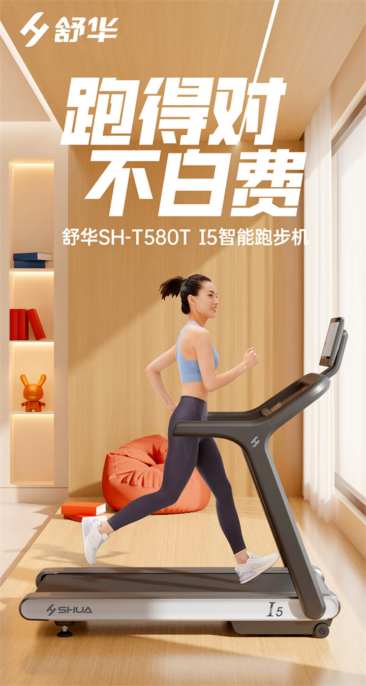舒華家用跑步機SH-T5100持續馬力達1.25HP,具有500×1350mm的跑臺,運用無線心率接收模塊監測心率,運用6位硅膠減震設計,最大承重是126kg,可以滿足大多數家庭的使用。